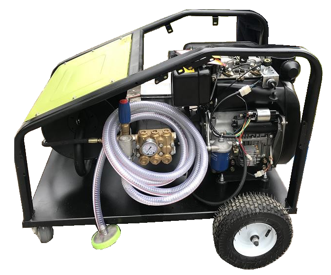 高壓水管道疏通清洗機(jī)以汽油機(jī)、柴油機(jī)或電機(jī)為動力驅(qū)動高壓泵運(yùn)轉(zhuǎn),利用高壓水射流在噴頭上產(chǎn)生的反作用力帶動高壓管前進(jìn)來疏通管道。當(dāng)噴頭到達(dá)管端時(shí),用力向管道外拉拽高壓管,使其向后移動,此時(shí)高壓水射流清掃管道內(nèi)壁并將淤泥、油塊等雜物沖掉并帶至管外,以達(dá)到清洗管道的目的。