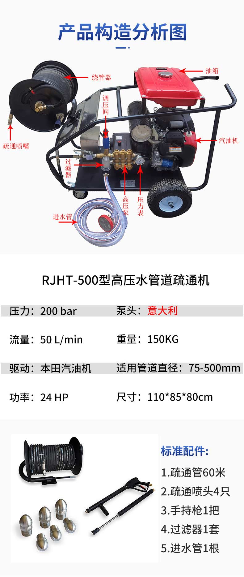 500型 本田汽油機 高壓疏通機- ?型號:RJHT-500